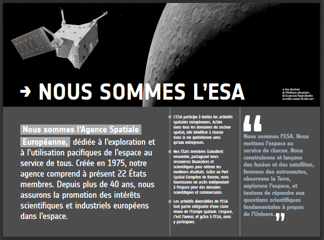- l’ESA (l’agence spatiale européenne)