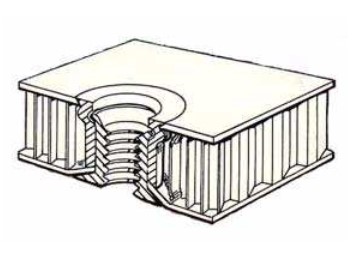 Lorsque le panneau composite a été détouré et percé sur une machine-outil (voir métier «usinage»), l’opérateur «collage d’inserts» va procéder à l’insertion et au collage des nombreux inserts qui seront autant d’interfaces mécaniques entre les panneaux, d’autres éléments de structure et les équipements électroniques ou mécaniques embarqués dans le satellite.