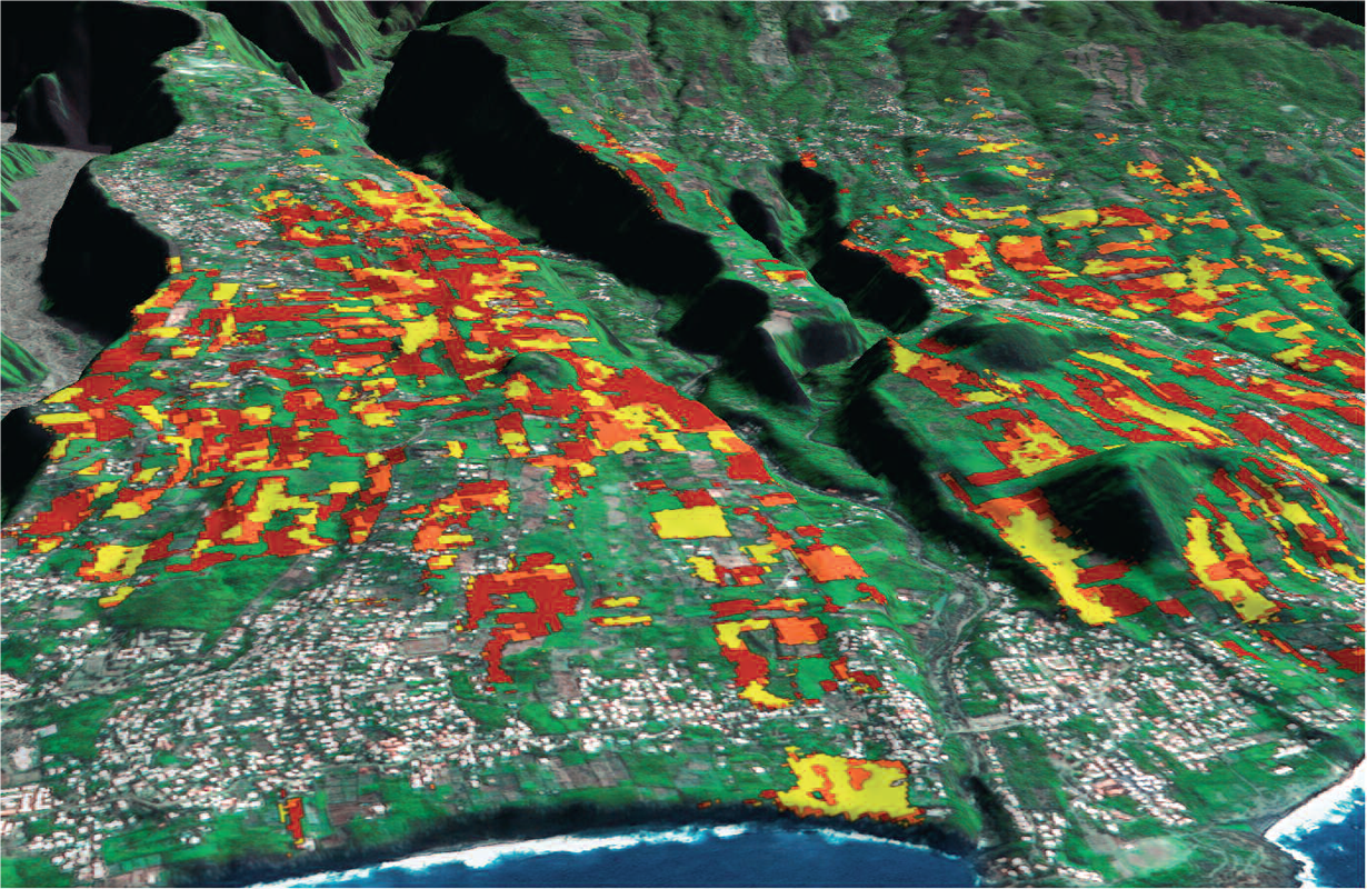 Par satellite, il est possible d’analyser la réflexion de la lumière par le sol ou par la végétation ce qui permet de faire le lien avec la teneur en matières organiques des sols, le stade de développement des cultures, leur niveau hydrique, la présence de maladies …